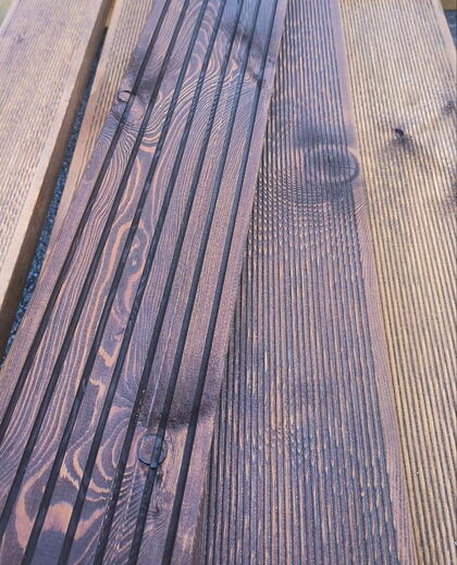| Покраска маслом строганной доски из лиственницы в два слоя с лицевой стороны и кромок, один слой с обратной стороны. Масло Renowood - 850 руб. м². Предварительная шлифовка входит в стоимость. |